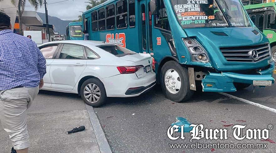 En este incidente participaron un camión de transporte público de la línea Metropolitano, con número económico 33 y placas 450-HY-5, que se dirigía a Ixtaczoquitlán, y un automóvil particular color blanco, con placas YPS-086-B del estado.