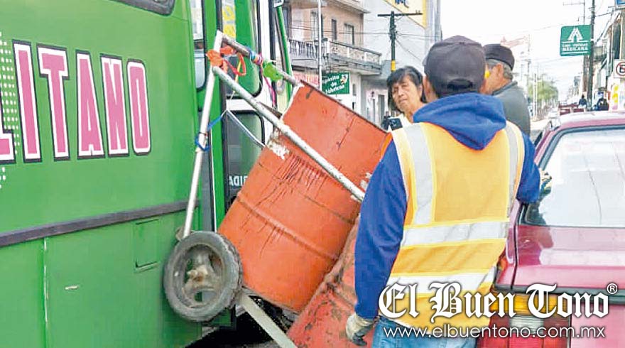 CAMERINO Z. MENDOZA.- Un autobús de la línea Metropolitano chocó contra un carrito recolector de basura, que a su vez impactó un automóvil estacionado en la avenida Miguel Hidalgo, provocando sólo daños materiales y obstrucción de la vialidad hacia el centro de la ciudad, ayer por la mañana.