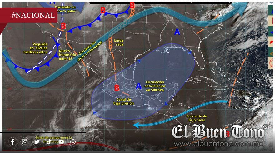 El ingreso del frente frío número 45, en interacción con una línea seca, incrementa el riesgo de fenómenos severos, incluyendo la posible formación de torbellinos en el norte de Coahuila, lo que representa un peligro para la población.