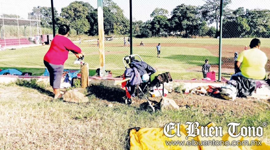 Omealca.- La Caravana Migrante, que integran unas 385 personas, pasó la noche en el campo de béisbol de la cabecera, donde instalaron sus casas de campaña, y cobijas para descansar tras siete horas de camino de Tezonapa a Omealca.