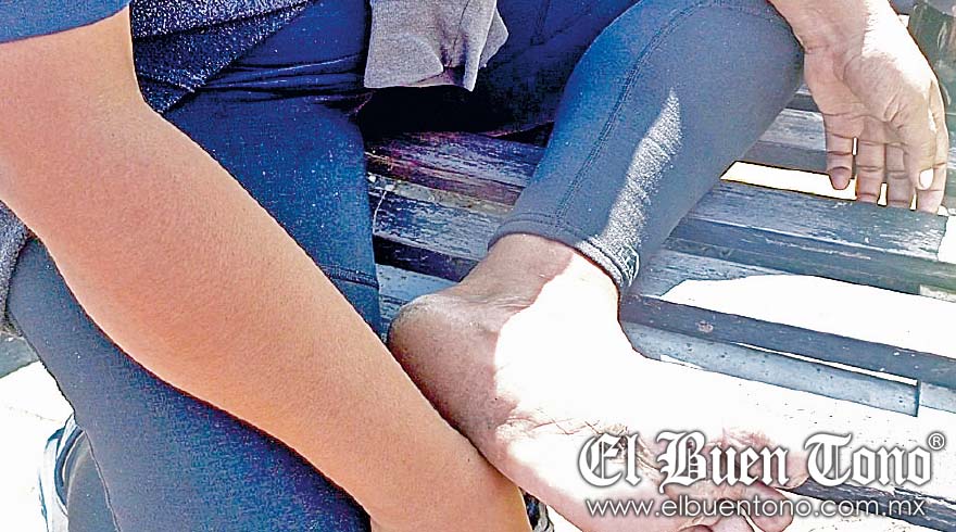 En entrevista, nos mostró el dolor que llevan sus pies por caminar más de 30 días, donde además de soportar el hambre, la sed y el frío, han padecido la enfermedad de su pequeño hijo que tiene asma.