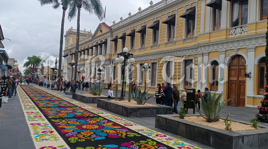 Orizaba.- Miles de ciudadanos y visitantes disfrutaron de la majestuosidad de los “700 metros, con siete estampados diferentes” de los tapetes de Huamantla, colocados desde el Paseo Colón hasta la Calle Madero.