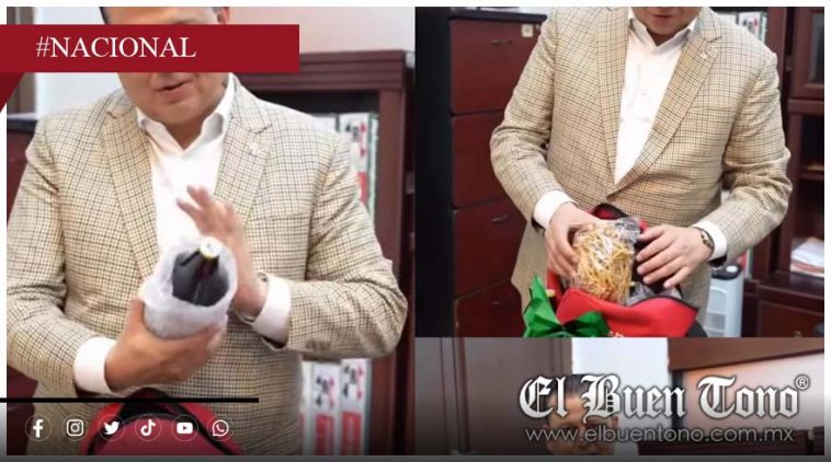 Las mochilas, de color rojo y con el logotipo del partido tricolor al centro, estaban adornadas con un moño verde y contenían caguamas colocadas en un compartimento lateral. Además, cada una llevaba adherida una tarjeta de felicitación.