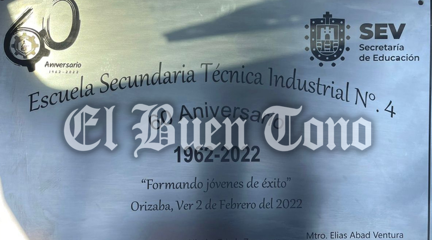Orizaba.- No fue colocada ni develada la placa conmemorativa del 60 aniversario de la Escuela Secundaria Técnica Industrial Número 4, debido a que a la coordinadora Vitalicia de Tecnologías, María Fidelia Torres, no le gustó, lo que indignó a exalumnos.