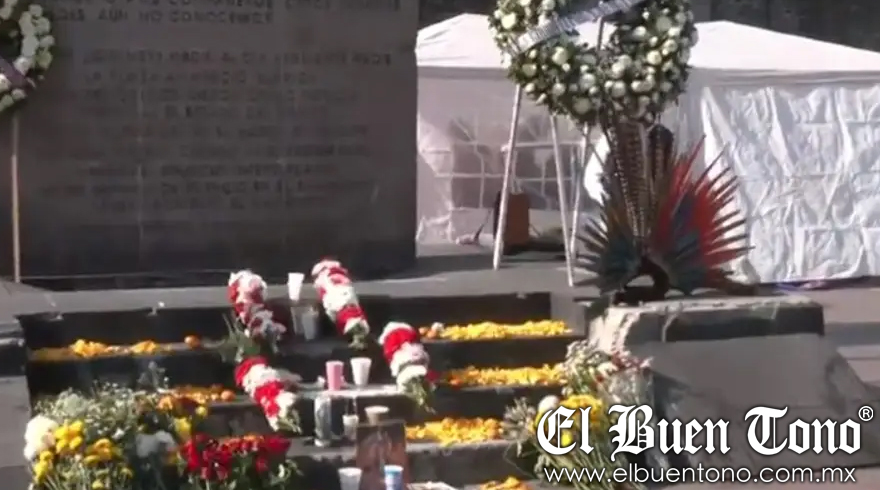 Posteriormente, colocaron una ofrenda en la Plaza de las Tres Culturas para conmemorar 54 años de la matanza estudiantil ocurrida el 2 de octubre de 1968.