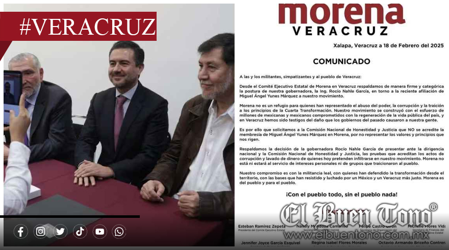 La declaración surge tras la reciente información sobre la afiliación de Yunes Márquez a Morena. Ramírez Zepeta expresó que no se puede tolerar que personas que han perjudicado a Veracruz y al movimiento de la Cuarta Transformación busquen afiliarse al partido. “No es lo mismo que estén allá en México y estén haciendo sus acuerdos en México, a que estén aquí representando, estando o siendo partícipes de la militancia de nuestro movimiento”, señaló.