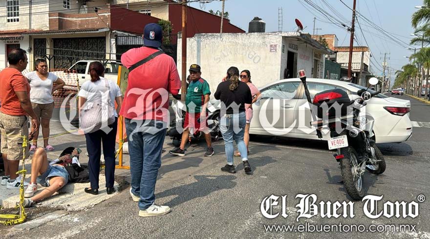 Orizaba, Ver.- Una joven motociclista resultó lesionada al ser impactada por el conductor de un automóvil, cuando circulaba sobre la avenida Paseo de las Palmas al llegar a la esquina con Sur 15 en la colonia Francisco Ferrer Guardia.