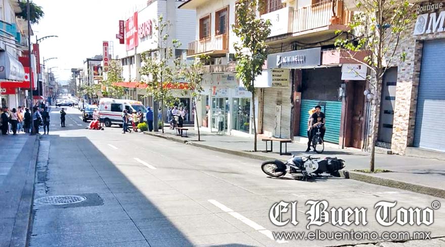 CÓRDOBA.- Un hombre de 65 años de edad, quedó tendido en el cruce de la avenida 1 y la calle 7 después de ser atropellado por un motociclista, quien derrapó varios metros al tratar de esquivar al peatón que cruzó la calle sin precaución.