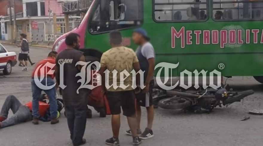 Ciudad Mendoza.- Paramédicos de la unidad de servicios municipales de Protección Civil le brindaron atención prehospitalaria a un motociclista, quien al ir circulando sobre el bulevar de la avenida Miguel Hidalgo, chocó contra la parte de atrás de un automóvil.