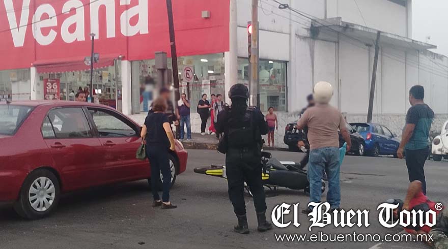 Córdoba, Ver.- Un motociclista fue arrollado por un automóvil particular esta tarde de sábado en la avenida 11 y calle 2. Al lugar llegaron paramédicos para brindarle el apoyo necesario al conductor de la moto. Elementos policiales llegaron para abanderar la circulación y evitar algún otro percance mayor.