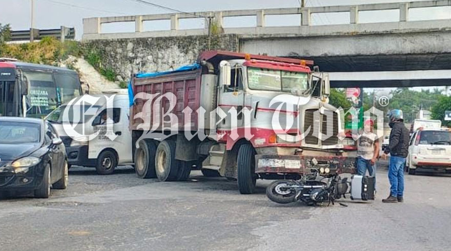Fortín.- Un camión de volteo que se incorporaba a la carretera federal Fortín-Huatusco, proveniente de la autopista, chocó por alcance contra un motociclista que se desplazaba hacía Monte Salas.