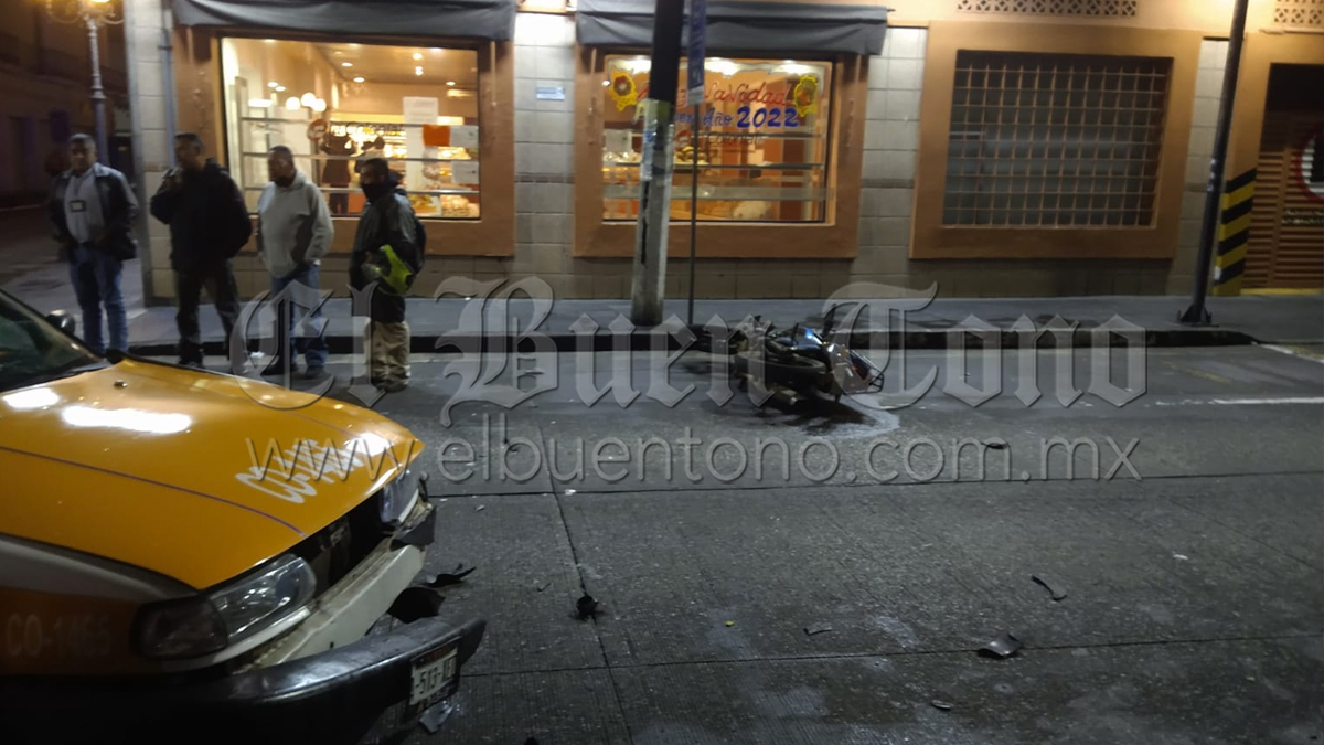 Córdoba.- Un motociclista resultó lesionado de consideración durante la madrugada de este martes, siendo atendido por paramédicos y trasladado al hospital, luego de que fuera atropellado por el conductor del taxi CO-1465, debido a que wl el chófer la no respetar la preferencia vehicular, ocasionó el accidente en el cruce de la avenida 2 y calle 5 en la colonia Centro, interviniendo autoridades de Tránsito Municipal.