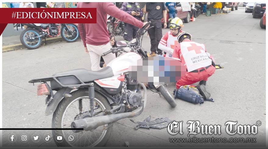 Córdoba.- Un motociclista resultó con una fractura en el tobillo derecho al ser impactado por un automóvil que salió sin precaución de la avenida 17 y trató de cruzar la calle 9, en la colonia Esperanza.