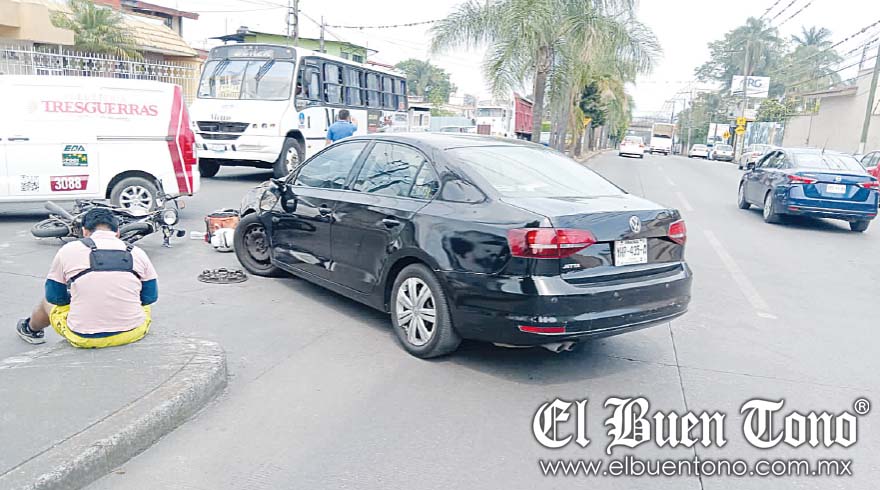 CÓRDOBA.- Un motociclista que bajaba sobre el bulevar Córdoba-Fortín, resultó lesionado al chocar contra un automóvil que se le cruzó en un retorno, a la altura de San Nicolás.