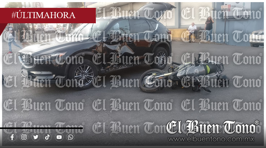 El accidente ocurrió cuando el conductor de un autobús plateado le dio el paso a la conductora de la camioneta, y al cruzar, el motociclista se impactó con el vehículo.