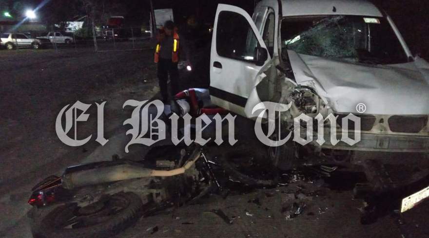 Amatlán,Ver.- Un motociclista resultó lesionado al chocar contra una camioneta Renault Cangoo, esta madrugada en la carretera estatal Córdoba-Atoyac, a la altura del parque industrial de Paraje Nuevo.