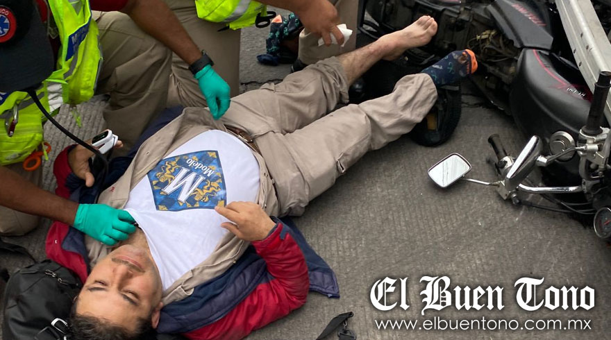 Córdoba, Ver.- Un motociclista resultó lesionado al impactarse contra un tráiler con razón social Almex, esta tarde en el bulevar Córdoba -Fortin, a la altura de la entrada a la calzada Tlacotengo. El lesionado fue atendido por paramédicos, mientas que elementos de la policíacos llegaron para abaderar la circulación y un perito de tránsito municipal para tomar conocimiento.