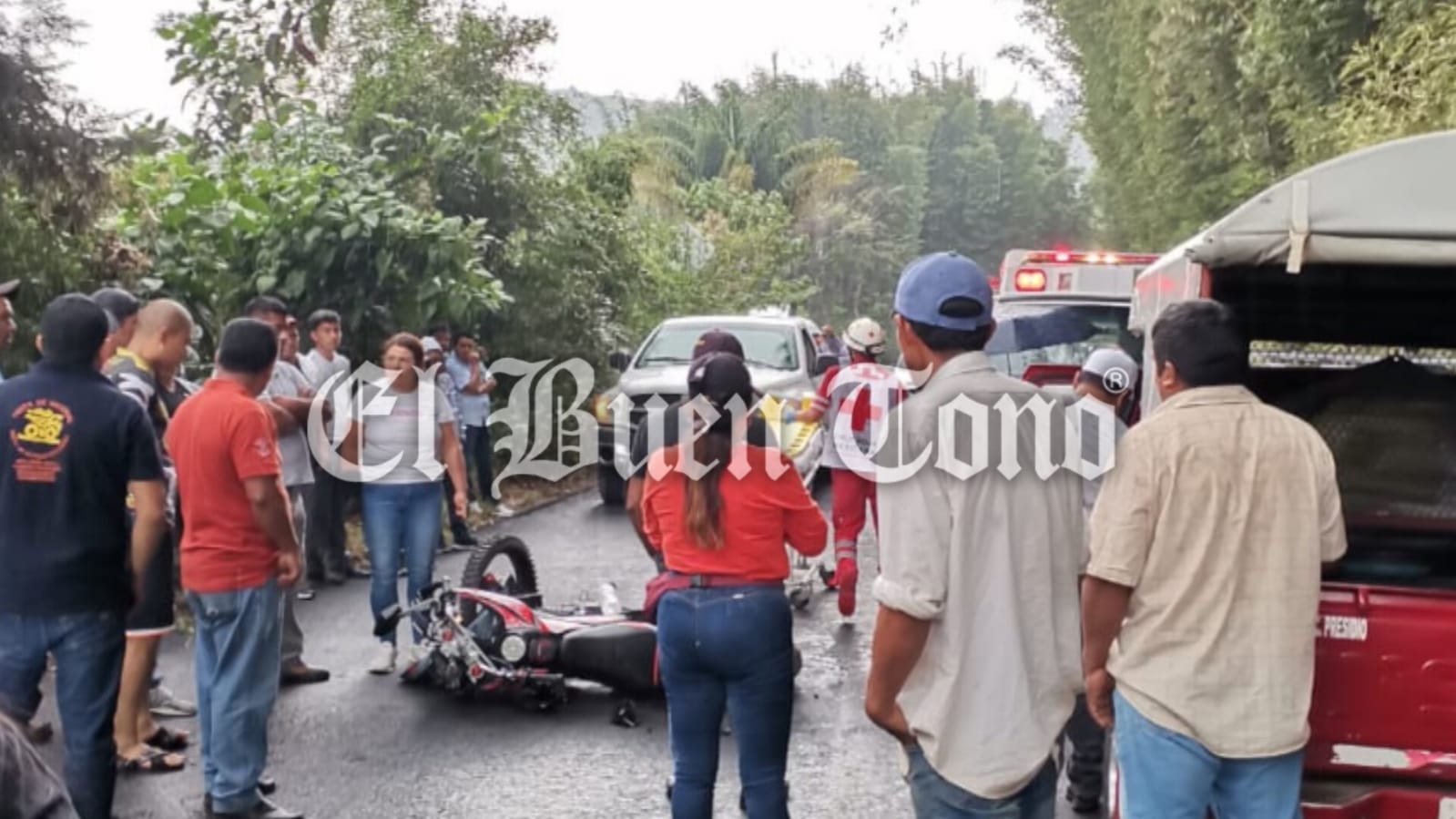 Coscomatepec, Ver.- Un motociclista resultó lesionado al ser arrollado por una camioneta de servicio mixto rural, este viernes por la tarde en la carretera federal tramo Los Naranjos- Coscomatepec, a la altura del tramo en reparación.