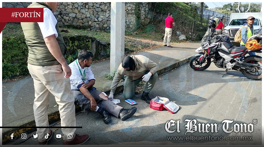 Fortín, Ver.- Un motociclista, repartidor de mensajería, resultó lesionado, no de gravedad, al derrapar esta mañana de miércoles en el bulevar Córdoba-Fortín, a la altura del arco del Shangri-La.