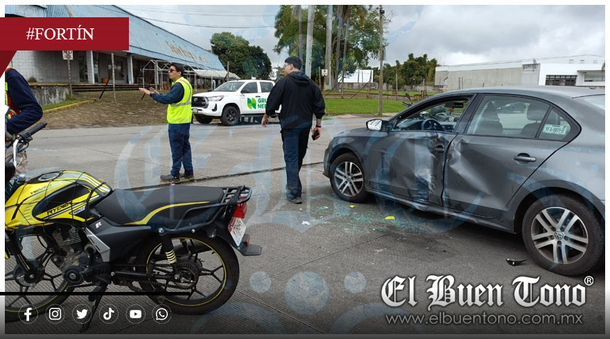 Fortín, Ver.- Un motociclista resultó lesionado al chocar contra un automóvil Volkswagen tipo Jetta, esta mañana de domingo en el bulevar Córdoba-Fortín, a la altura de la bodegas, antes de llegar a crucero nacional.