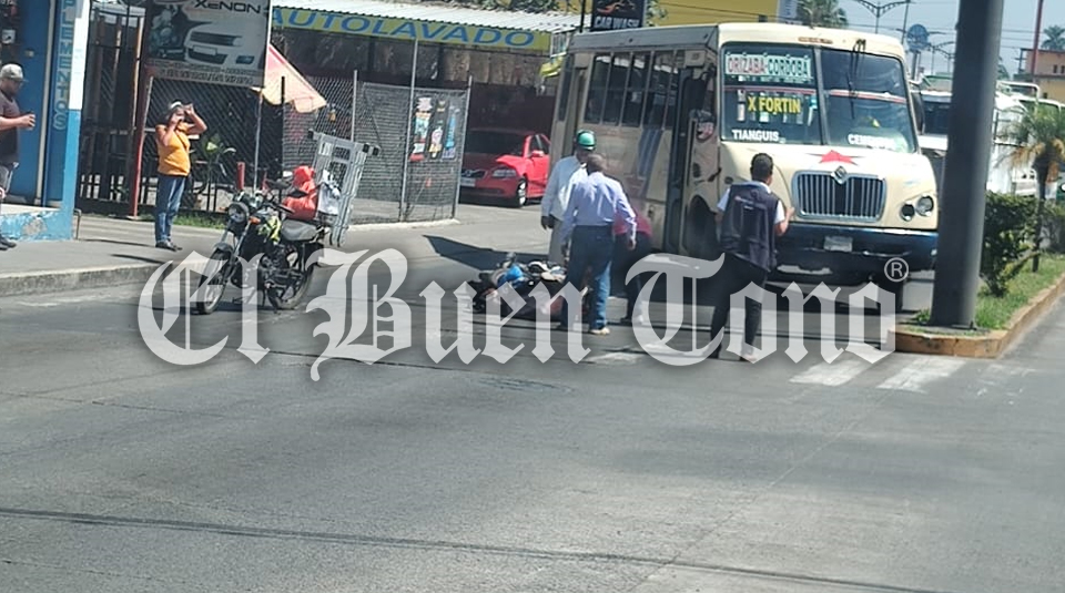 Córdoba, Ver.- Un motociclista resultó lesionado al chocar contra un vehículo particular, este martes por la tarde en la avenida 11 y calle 7.