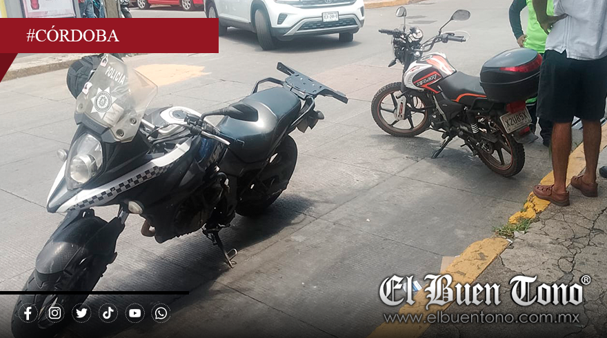 Córdoba, Ver.- Un motociclista resultó lesionado la mañana de este sábado tras un choque contra una unidad motorizada de la Policía Estatal en la intersección de la avenida 3 y calle 17, en la zona centro de la ciudad.