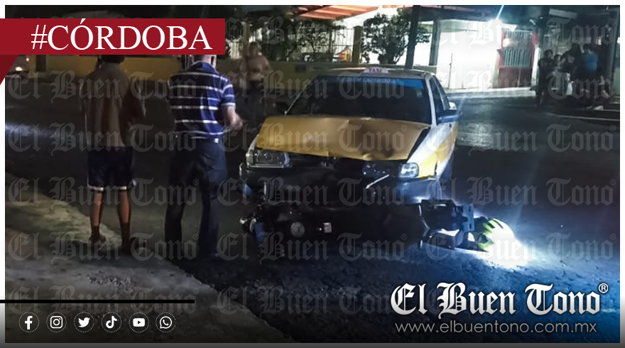 Córdoba.- Con una lesión en la pierna derecha resultó un motociclista que fue arrollado por un taxi de Córdoba, marcado con el número CO-318, el cual salió sin precaución de la unidad habitacional Pénjamo, para incorporarse a la carretera Córdoba-Amatlán.