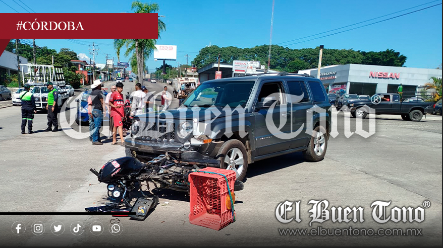Córdoba.- Un motociclista resultó lesionado la tarde de este viernes, luego de impactarse contra una camioneta que se le cruzó de manera repentina sobre el bulevar Córdoba-Peñuela, a la altura de la entrada a la comunidad de Cuauhtémoc.