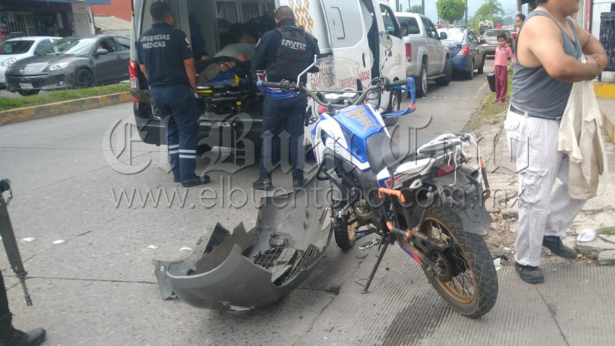 Córdoba.- Con múltiples lesionados en el cuerpo, resultó esta mañana de viernes un motorista que tuvo que ser auxiliado por paramédicos y trasladado al hospital, al ser impactado por vehículo Nissan March, al momento de que ambas unidades circulaban sobre el bulevar 5 de Mayo en la colonia Santa Cruz Buenavista, tomando conocimiento las autoridades de Tránsito Municipal.
