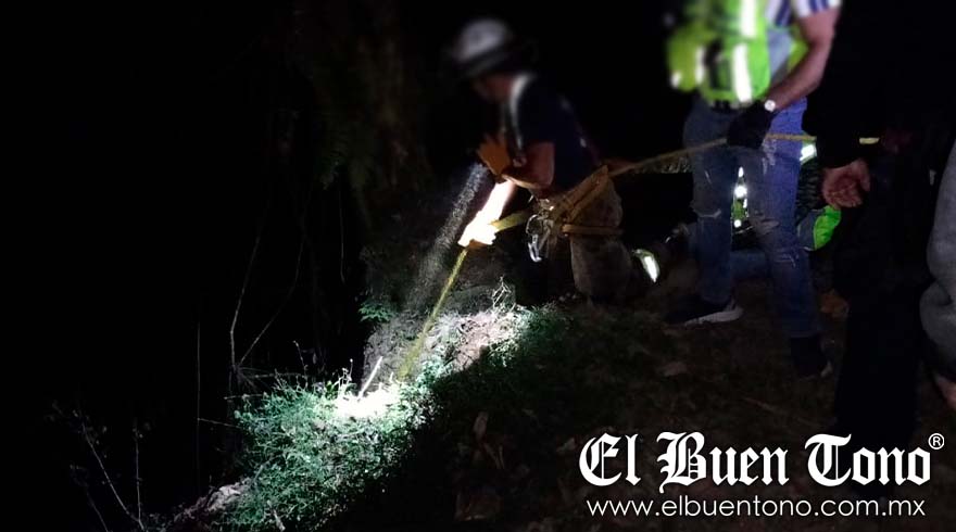 Equipos de Protección Civil, Bomberos regionales y Policías municipales trabajaron bajo la oscuridad con cuerdas y equipo de rescate para recuperar el cuerpo.