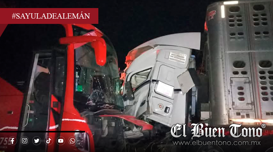 Sayula de Alemán, Ver.- Un trágico accidente se registró la madrugada de este martes en la carretera federal 145, en el tramo Sayula–Alemán, a la altura de la curva conocida como La Iguana, donde el conductor de un tráiler tipo jaula, perteneciente a la empresa Kugar, perdió la vida tras impactarse de frente contra un autobús de la línea ADO, unidad número 0755.