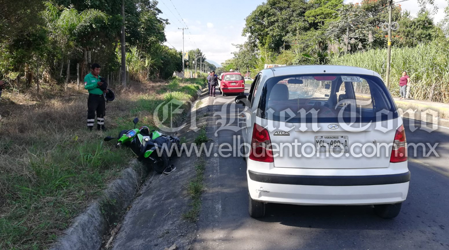 Córdoba, Ver.- Una mujer embarazada que conducía una motoneta resultó gravemente lesionada teniendo que ser rescatada por paramédicos de Cruz Roja y trasladada de emergencia al Hospital General de Córdoba, debido a que fue impactada por un vehículo Atos, debido a que su conductor invadió carril contrario provocando el accidente al circular sobre la carretera estatal Córdoba-Chocamán a la altura de la localidad la Luz Palotal, para posteriormente bajar del vehículo y darse a la fuga caminando.