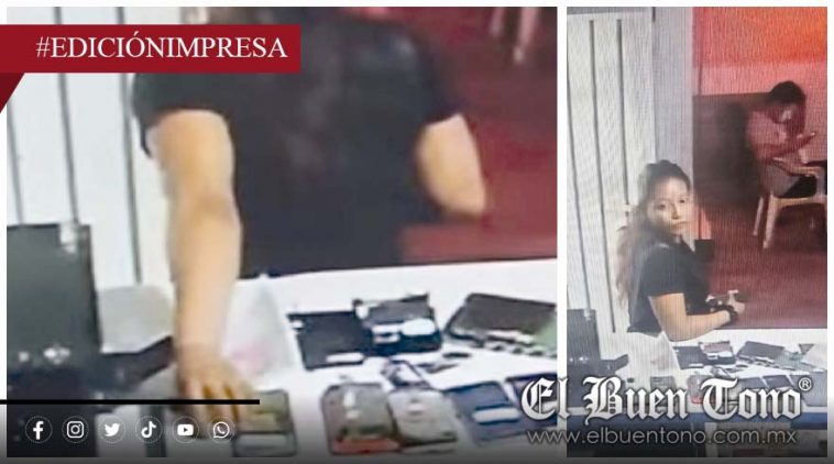 Cuitláhuac.- Una mujer fue captada por una cámara de vigilancia al robar un celular de un local de reparación de teléfonos, ubicado en la avenida 7 y calle 13, en el centro de Cuitláhuac.
