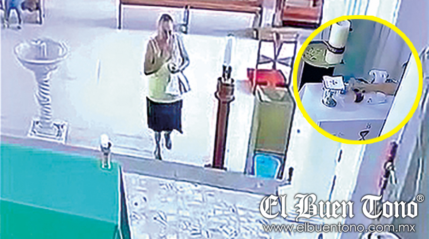 Una cámara de seguridad ubicada en el interior capturó el momento en que una señora, cuya identidad está siendo investigada, sustrajo las vinajeras del altar.