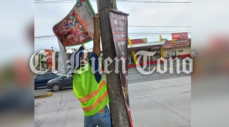 Desde la mañana de este viernes, inspectores de la Dirección de Comercio comenzaron con el retiro de anuncios publicitarios, los cuales estaban colocados en lugares prohibidos y carentes de permiso.