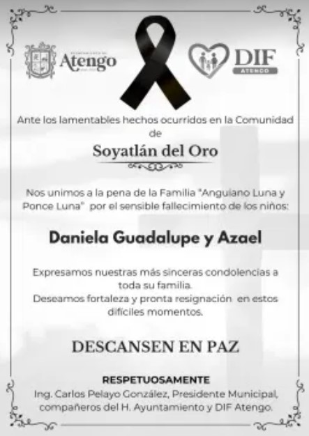 Horas más tarde, autoridades municipales confirmaron la identidad de las víctimas, quienes fueron reconocidas como Daniela Guadalupe y Azael, y expresaron sus condolencias a la familia afectada.