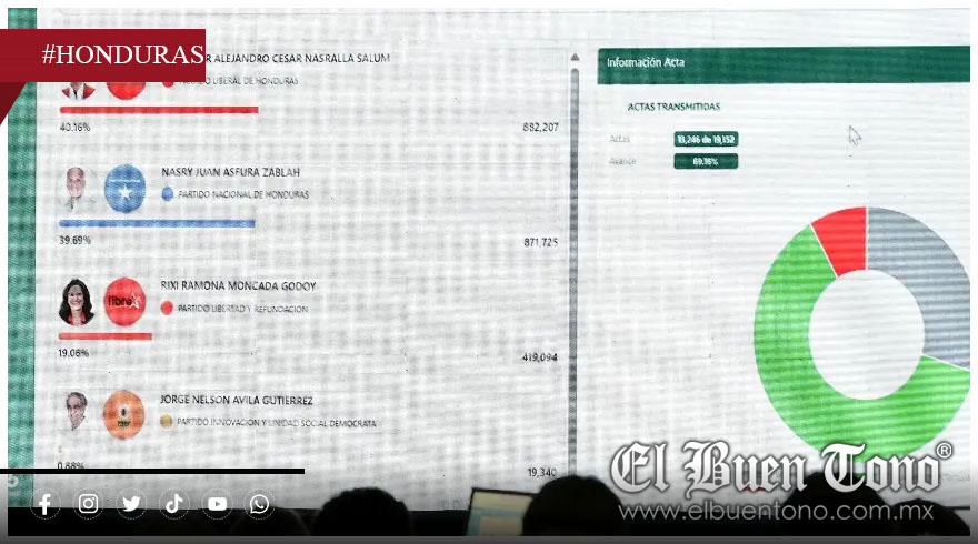 Honduras.- El escenario electoral en Honduras dio un giro significativo este martes luego de reanudarse el conteo de los resultados preliminares. Con el 70 por ciento (%) de las actas escrutadas, el candidato del Partido Liberal, Salvador Nasralla, obtuvo 893 mil 718 votos, lo que representa el 40.16%, superando por poco más de 10 mil sufragios a Nasry “Tito” Asfura, aspirante del Partido Nacional, quien suma 883 mil 639 votos, equivalente al 39.70%.