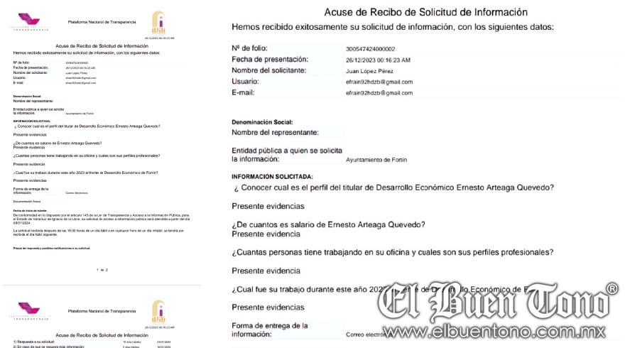 Fortín.- A 22 días de haber entregado una solicitud vía transparencia, diario El Buen Tono aún espera respuestas de la Unidad de Acceso a la Información del municipio, respecto al perfil y salario del titular de Desarrollo Económico, Ernesto Arteaga Quevedo.