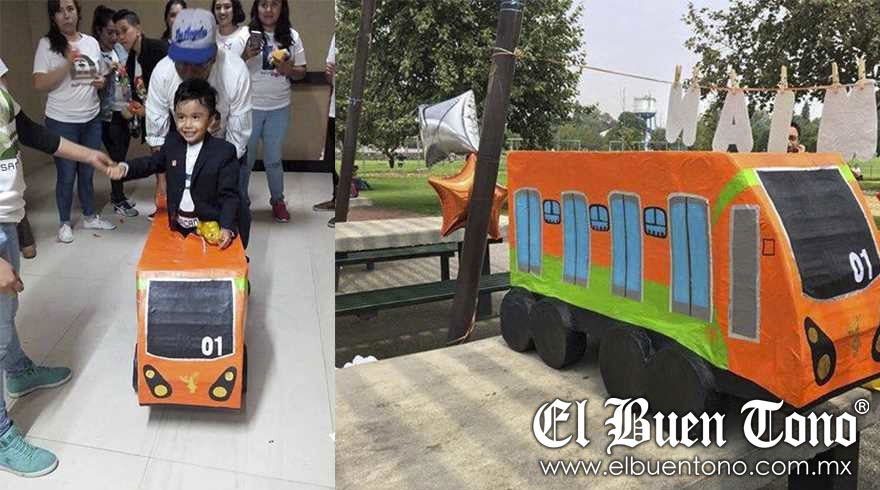 Alonso les pidió a sus papás celebrar sus tres añotes de edad en el Metro, eso desde luego era algo poco más que posible, así que organizaron la fiesta con objetos alusivos.