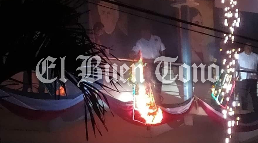 Atoyac.- En el grito de la Independencia se incendiaron los adornos patrios del Palacio Municipal por un mal manejo de la pirotecnia, tal incidente no pasó a mayores aunque este hecho se volvió preocupante para todos, ya que se descubrió que en dicho lugar no se cuenta con extintores, por tal motivo el fuego fue apagado por parte del personal de Protección Civil con garrafones de agua; indignada la población con el Edil ya que no hay un plan profesional para calmar un incendio de grandes dimensiones que surja pudiendo provocar irreversibles accidentes.