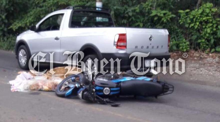 El pan ya no pudo llegar a su destino y el motociclista fue atendido por personal de Protección Civil de Totutla.