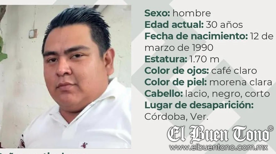 Córdoba, Ver.- Familiares de José Manuel Rosas Anica, de 30 años de edad, continúan en su búsqueda y piden la ayuda y colaboración de las autoridades policíacas como de la ciudadanía en general para localizarlo.