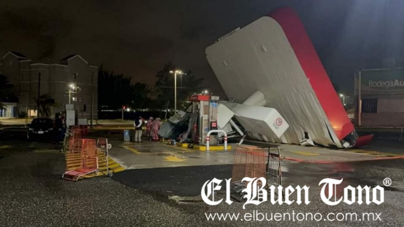 Equipos de Protección Civil y Bomberos acudieron al lugar para evaluar la situación y tomar las medidas de seguridad necesarias. Por precaución, se cerraron las válvulas de la bomba de gasolina y se desconectó el suministro eléctrico. La zona también fue acordonada, con la intención de retirar la estructura una vez que mejoren las condiciones climáticas.