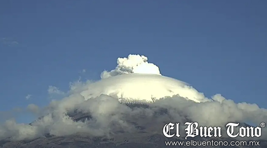 Misma que llamó la atención, ya que sobre el coloso había una nube lenticular, captada a las 8:55 horas de hoy sábado.