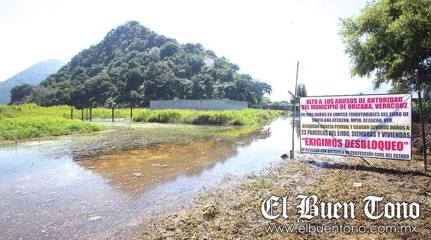 Atzacan.- Más de 23 ejidatarios y 200 familias resultaron afectados con el taponamiento del cauce natural de la laguna del Ejido Atzacan que causó la construcción del vaso regulador del Chirimoyo por parte del Ayuntamiento de Orizaba.