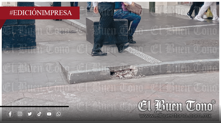 El paso constante de vehículos pesados con material para la estructura de acero y hierro forjado ha fracturado la loseta, roto los orificios que permiten el desagüe pluvial y debilitado el pavimento, evidenciando que el proyecto se impone sin planeación ni cuidado del espacio urbano.