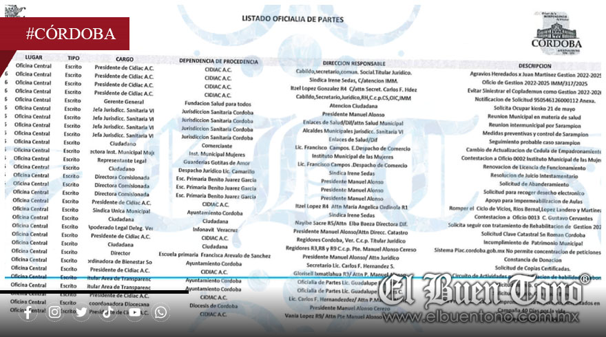 Córdoba, Ver.- El Ayuntamiento de Córdoba confirmó que durante 2026 al menos 20 documentos ingresaron a la Oficialía de Partes sin el sello oficial de recepción, lo que genera incertidumbre jurídica. El área reconoce que no se dio la respectiva capacitación.