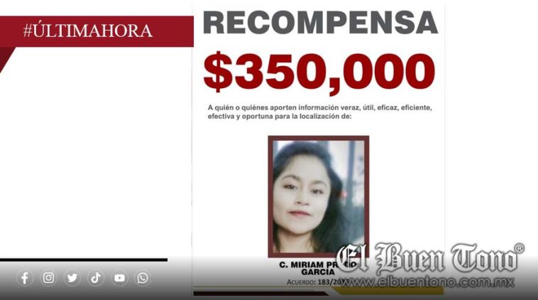 Córdoba.- Las autoridades estatales de investigación ofrecieron 350 mil pesos para la localización de la joven Miriam Prado Castro, quien fue reportada como desaparecida desde hace más de un año.