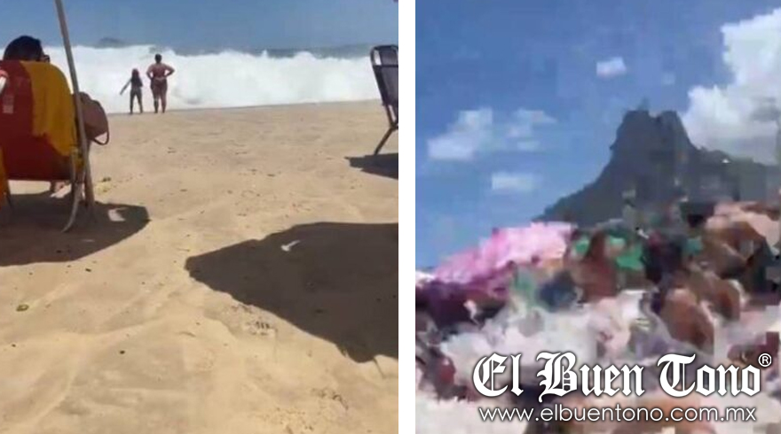 Un día de vacaciones idílico se convirtió en una experiencia aterradora en Río de Janeiro, Brasil, cuando una ola de tres metros de altura sorprendió a turistas desprevenidos, arrasando con palapas y pertenencias personales que se encontraban lejos de la costa.