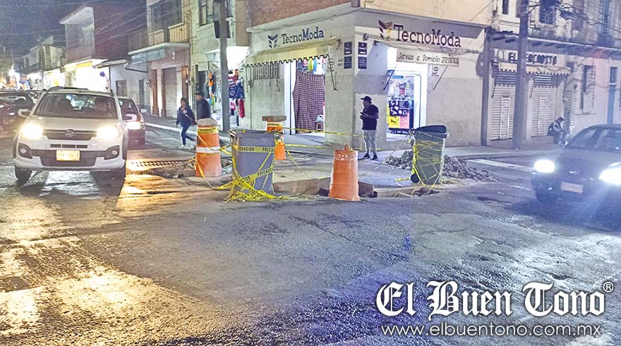 Orizaba.- A casi dos meses de que se inició una obra en la intersección de las calles Norte 2 y Oriente 9, la zona sigue acordonada, provocando congestionamiento vehicular y molestia en la ciudadanía.